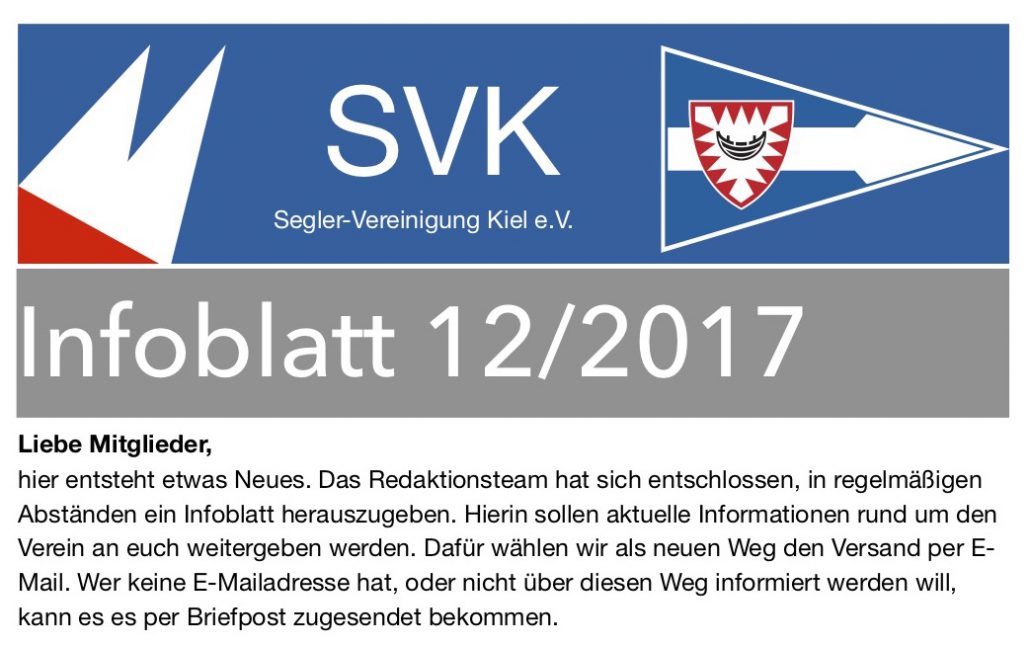 Um den Informationsfluss im Verein zu verbessern hat sich das Redaktionsteam dazu entschlossen in regelmäßigen Abständen ein Infoblatt herauszugeben. Dieses wird per E-Mail versendet.