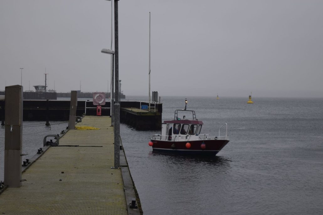 Wie gewohnt war auch Kapitän Mielke mit seinem Motorboot „Holsatia“ für die praktische Prüfung zur Stelle. Aber es wurde den Prüflingen nicht so leicht gemacht, an diesem Tag an Bord zu kommen. Der Wind hatte den Wasserstand im Wiker Hafen um mehr als einem Meter sinken lassen.