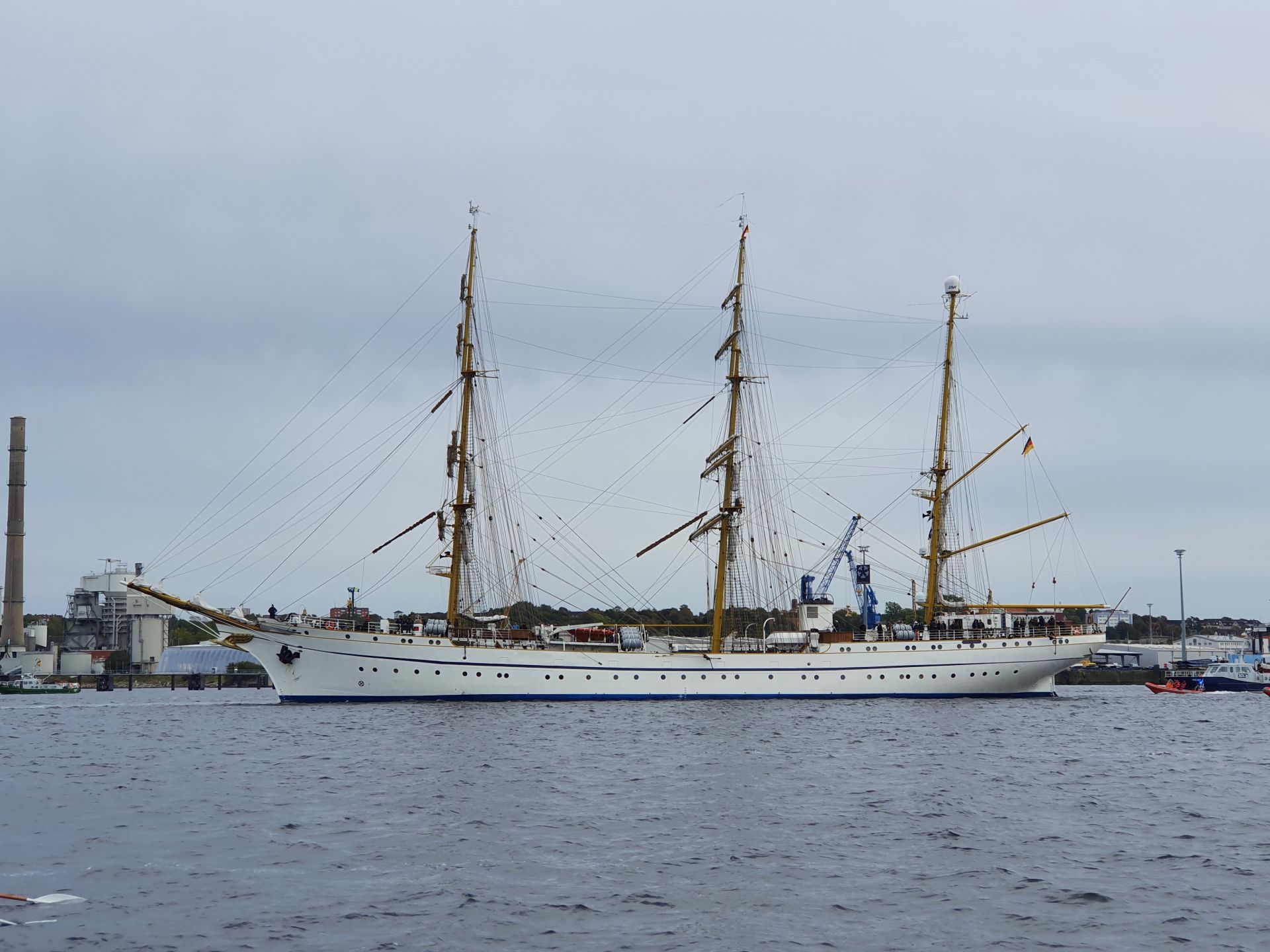 Ganz ehrlich, ein wenig haben wir dieses Schiff vermisst, oder? Man kann sicherlich über die Sanierung und die entstandenen Kosten diskutieren, aber schön ist es schon, jetzt wieder ein weißes Segelschulschiff im Grau der restlichen Marineschiffe im Nachbarhafen zu sehen. Über 5 Jahre war sie weg und wurde wieder fit gemacht.